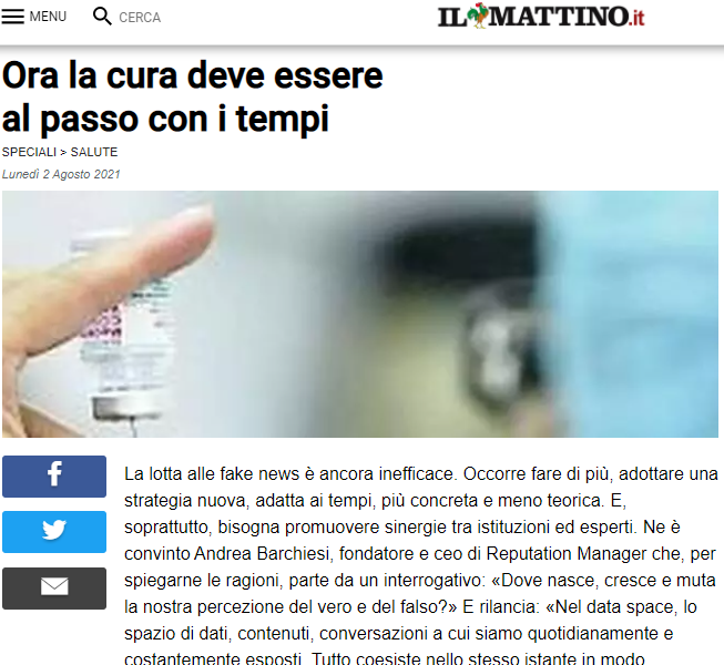 Il Mattino intervista Andrea Barchiesi, Fondatore e CEO di Reputation Manager, sugli obiettivi di Fondazione MESIT – Fondazione per la Medicina Sociale e l’Innovazione Tecnologica.