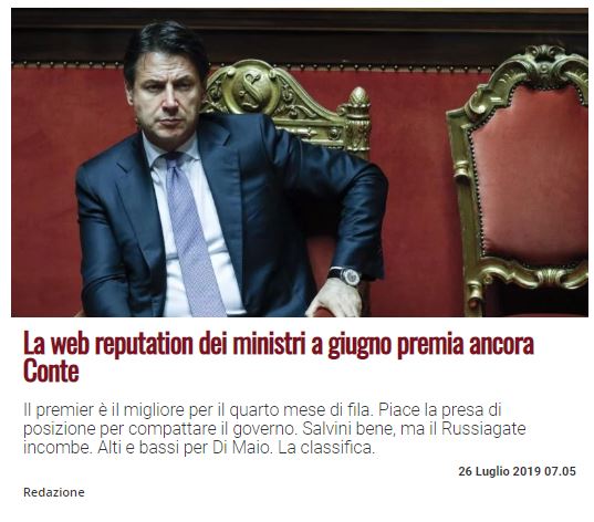 Come spiega Andrea Barchiesi, co-founder di Reputation Science: «Il dibattito politico della prima parte di giugno è stato influenzato dall’onda lunga dei risultati delle elezioni europee del 26 maggio. C’è stato un certo fermento nel governo, dove non sono mancate le discussioni su rimpasti e rapporti di forza da riequilibrare. Tra gli altri temi caldi, la manovra economica e le voci sulle possibili sanzioni europee all’Italia per debito eccessivo, il caso #SeaWatch 3 e l’assegnazione delle #Olimpiadi invernali 2026 a Milano-Cortina».