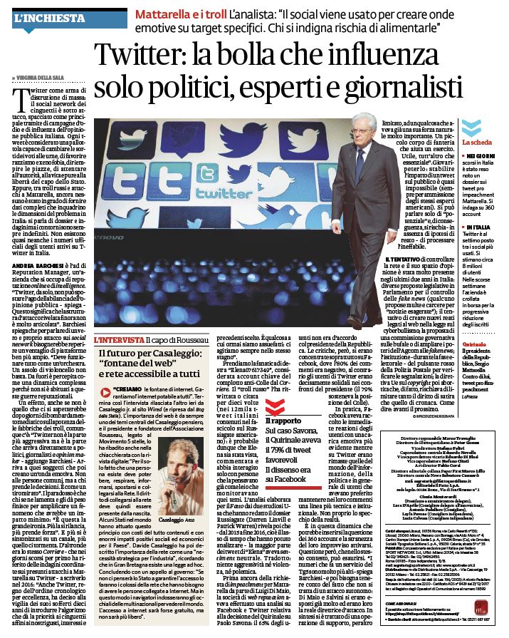 Il Fatto Quotidiano intervista Andrea Barchiesi sul caso dell’accatto web al Quirinale, dopo il suo “no” a Paolo Savona.